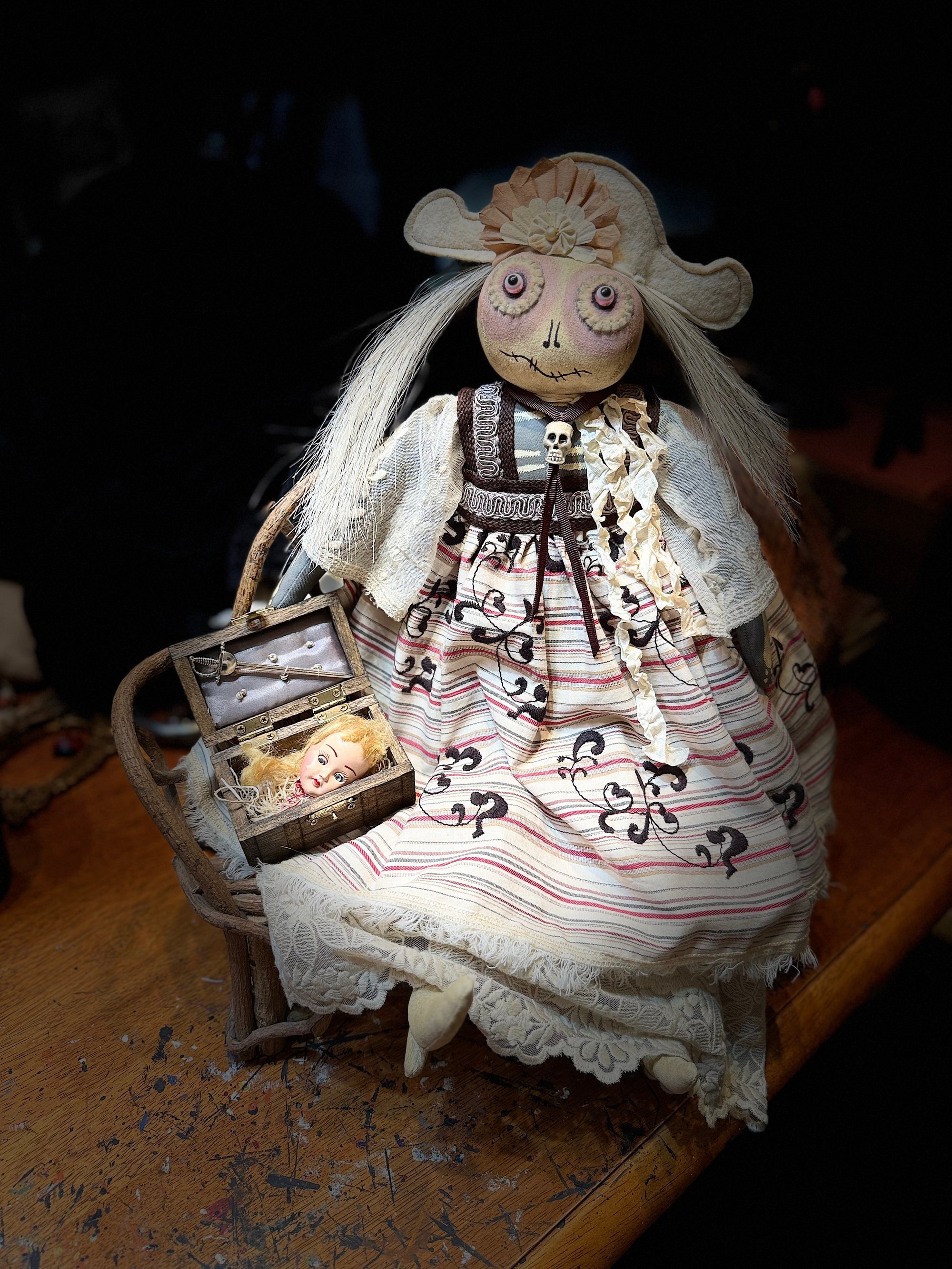 All Tattered Moon dolls are one-of-a-kind originals created by hand from new, vintage and recycled objects. I use both machine and hand stitching in my creations.